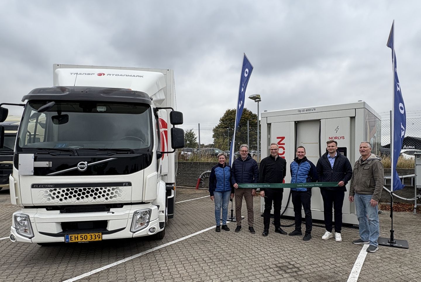 Samarbejdet mellem Norlys og Volvo Truck Center er kommet i stand i forbindelse med salg af elektriske lastbiler til transportvirksomheden TransportDanmark A/S. I forbindelse med TransportDanmarks A/S overgang til elektriske lastbiler fremkom der ønske om at finde lade-muligheder i Hillerød til deres nyindkøbte Volvo lastbiler.